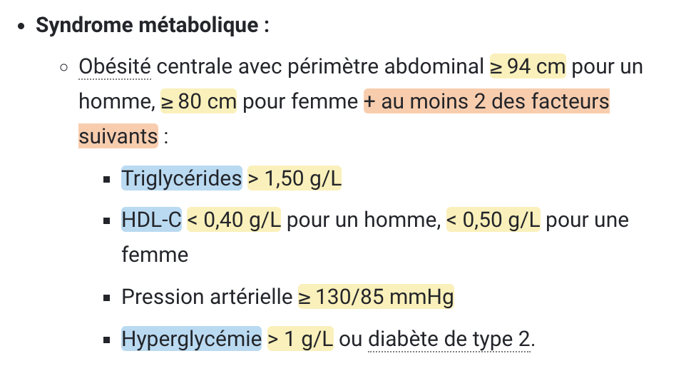 Critères du sd métabolique