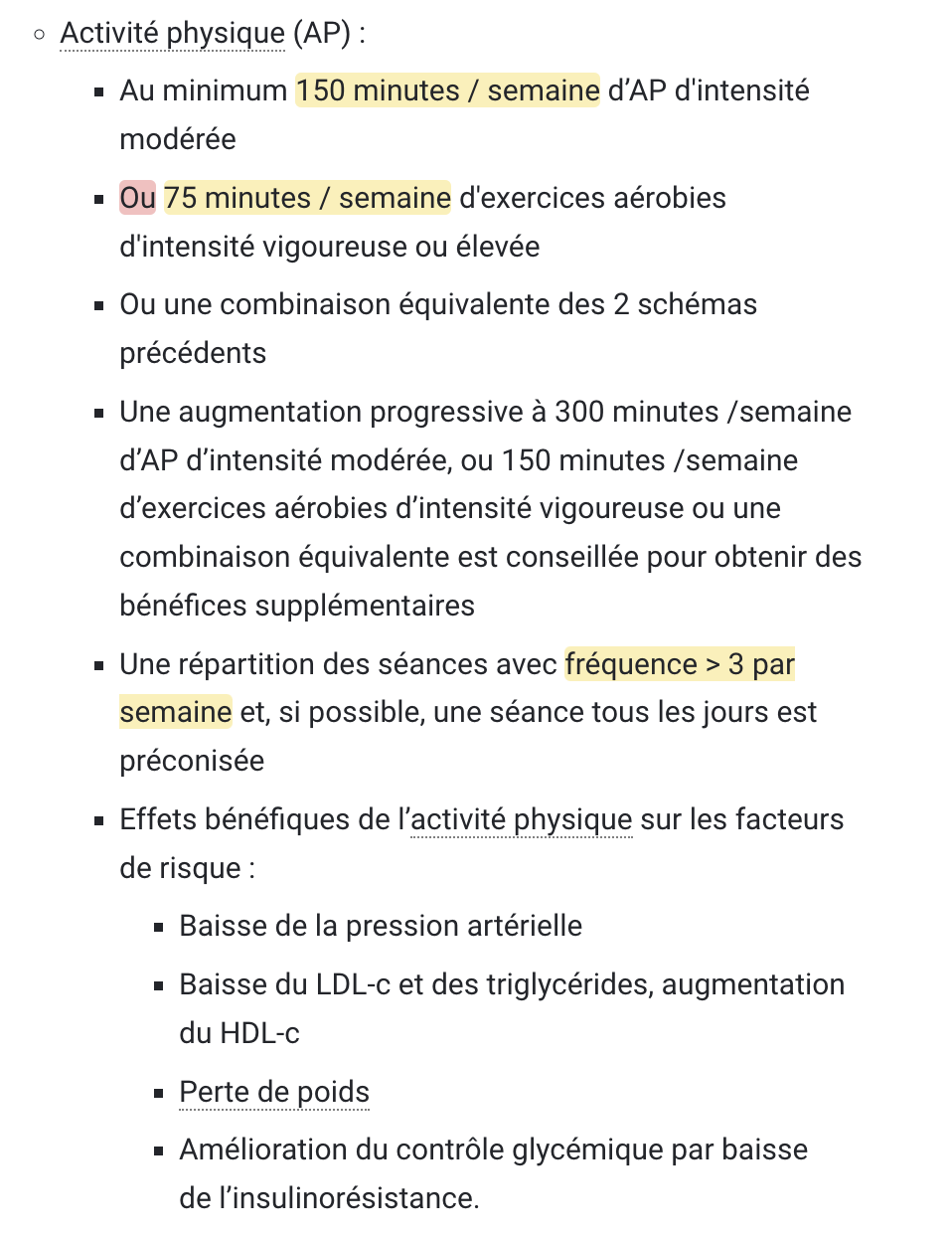Activité physique préconisée