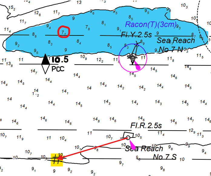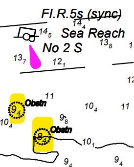 Sub 10m obstructions to the South of SR2S but outside of secondary channel
