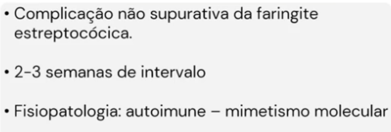 Diferentemente da Glomerulopatia pós estreptocócica: ela não ocorre após piodermite.