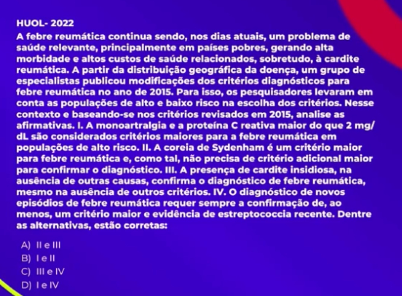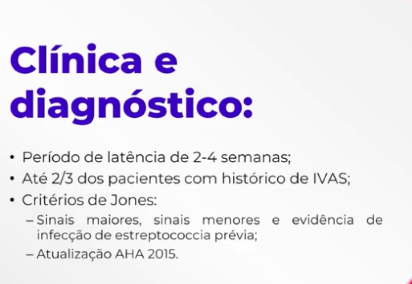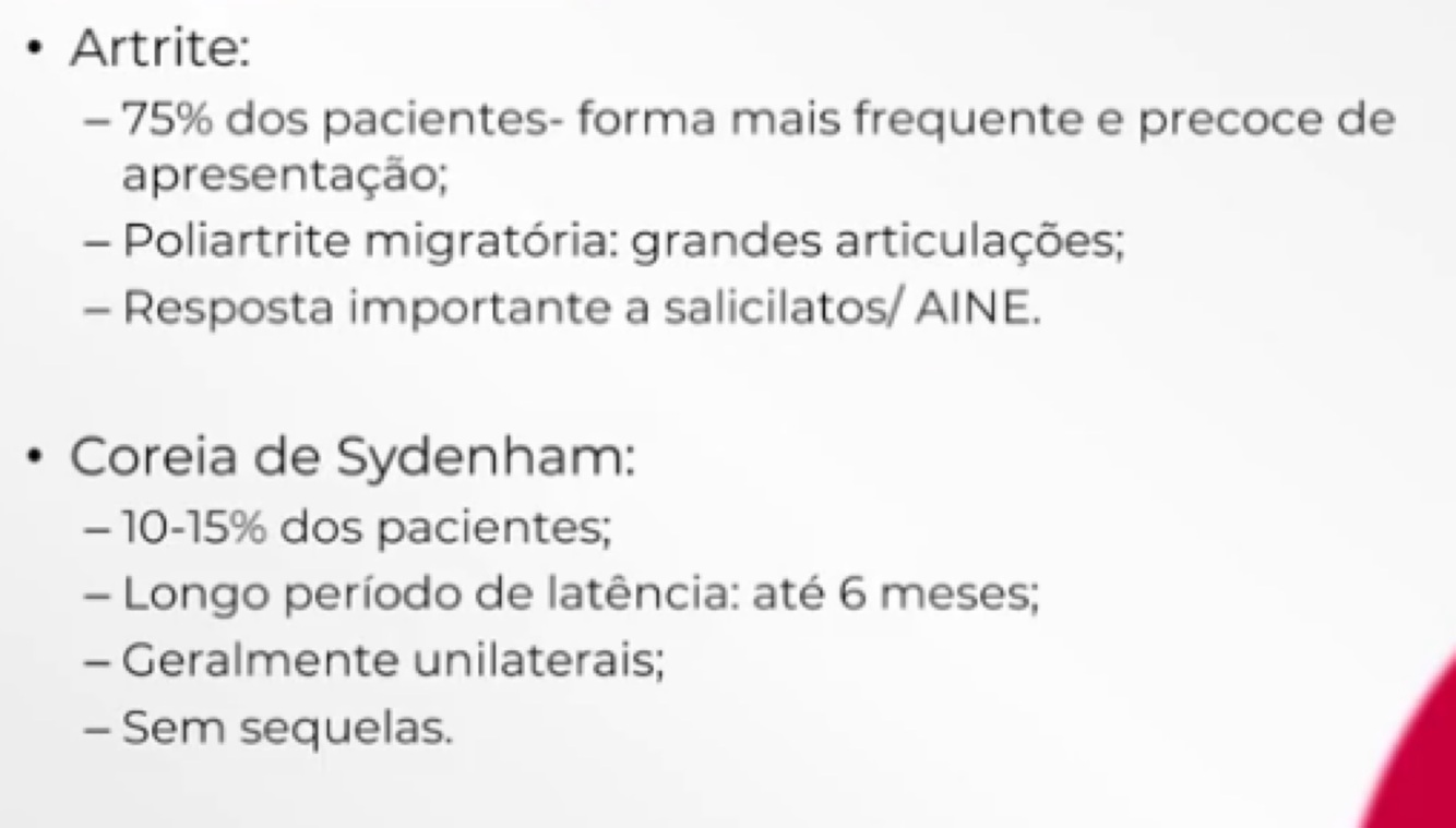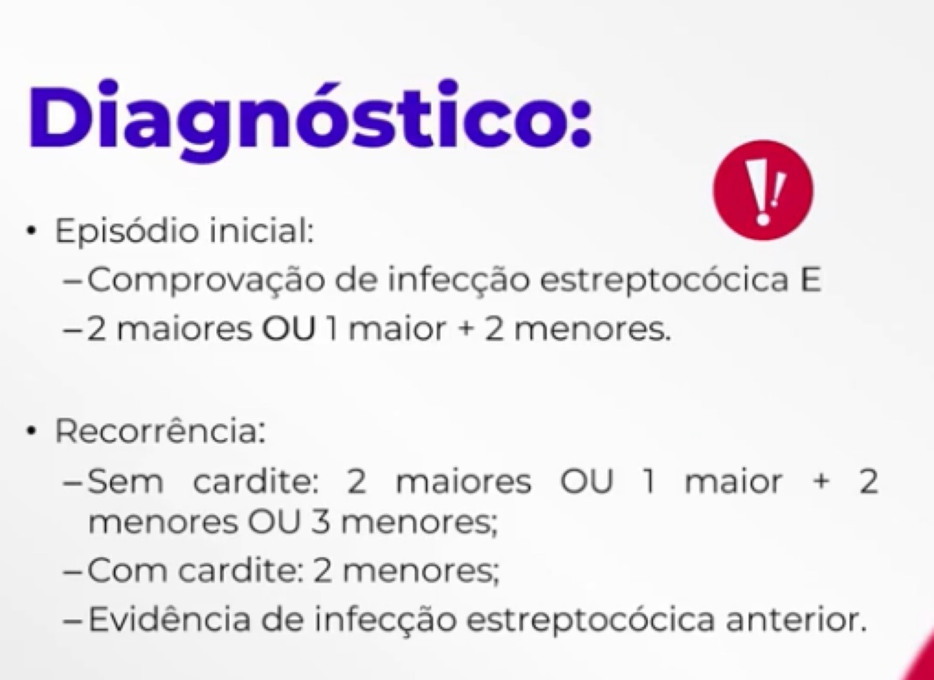 Obs: Coreia é uma manifestação tardia, logo não necessita de comprovação do estrepto.