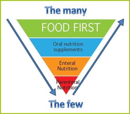 Give an overview of the management for nutritional support according to the degree of malnutrition risk