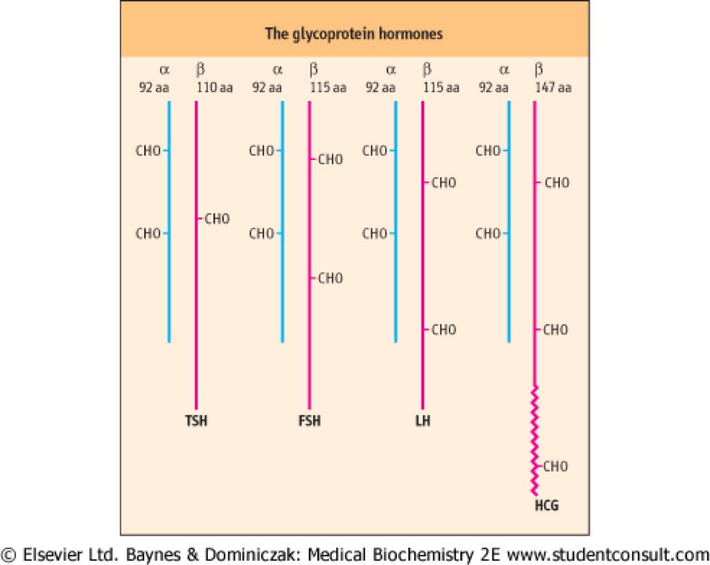 Compare the three pituitary glycoprotein hormones and HCG.
