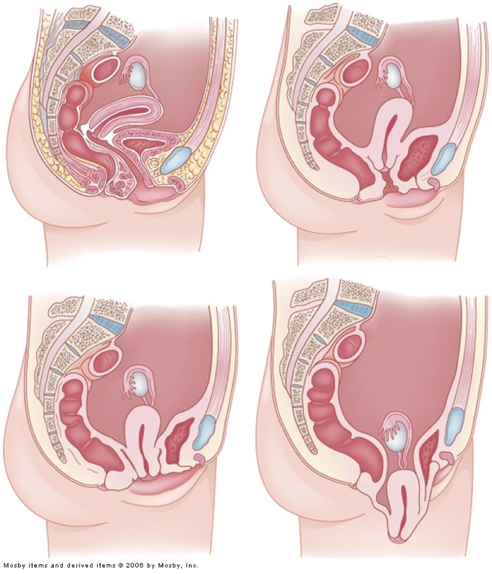 What are the different degrees of uterine prolapse?