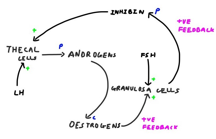 Oestrogens stimulate granulosa cells to produce more oestrogens