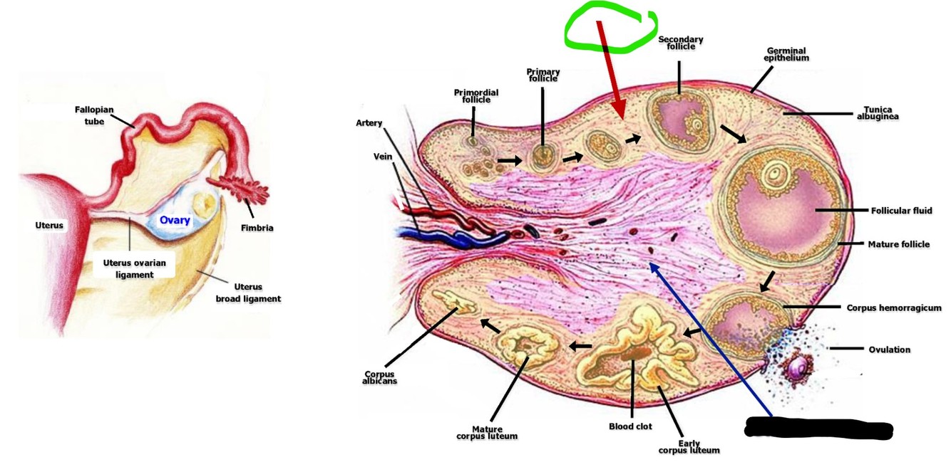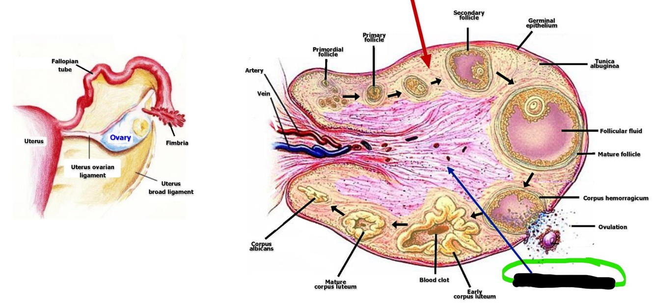 the outer portion of the ovary. The ovarian follicles are located within the ovarian cortex