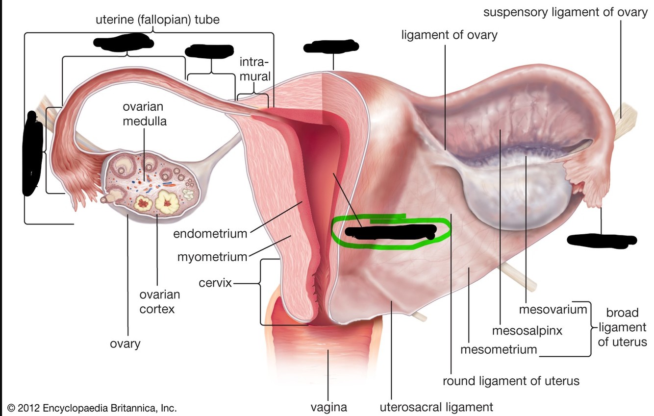 a fibrous ligament that connects the ovary to the lateral surface of the uterus