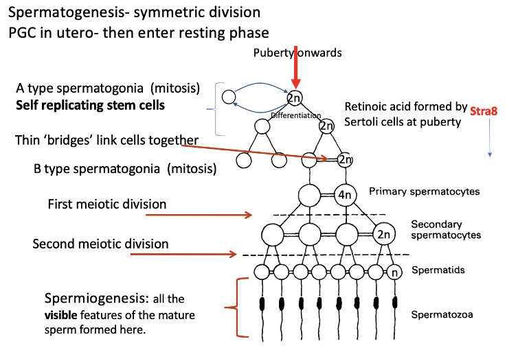 At birth all PGCs have developed to oogonia (or died) and are at the 4N stage – compare with the male