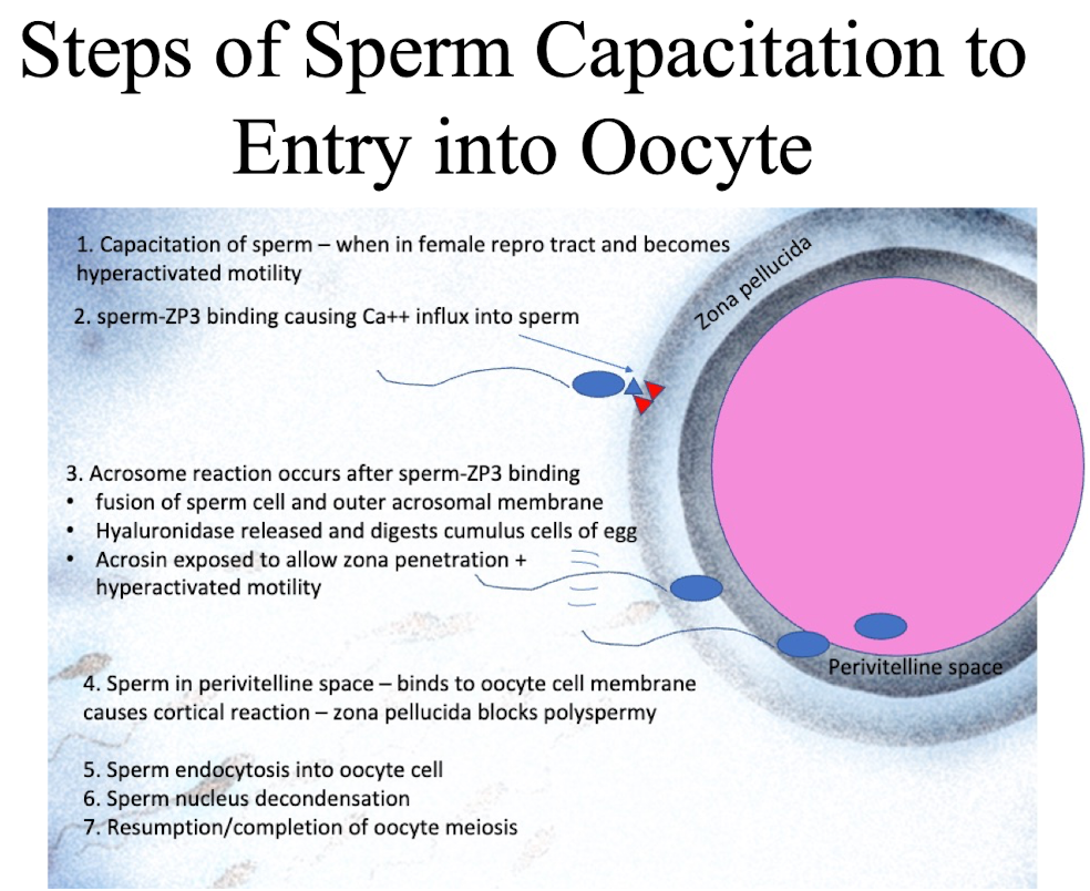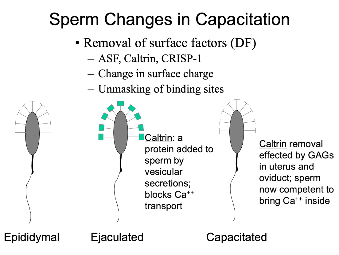 - Caltrin removal off sperm occurs in the uterus & oviduct prior to AR, allowing for Ca2+ influx which induces membrane fusion of sperm & oocyte.