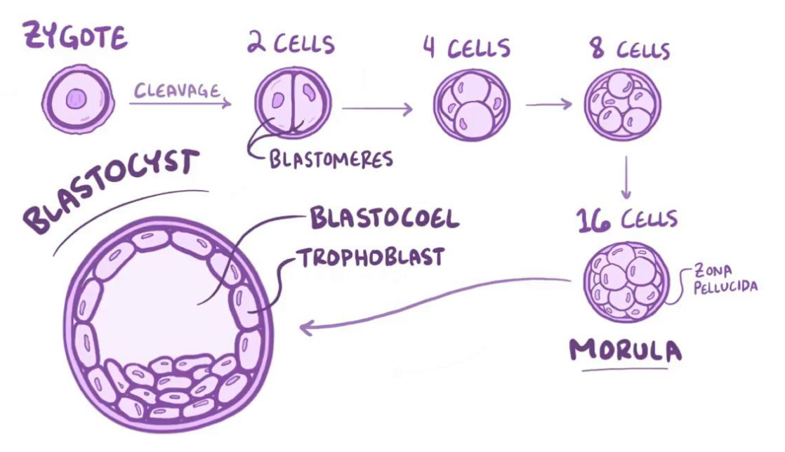 Describe how the zygote develops into a blastocyst