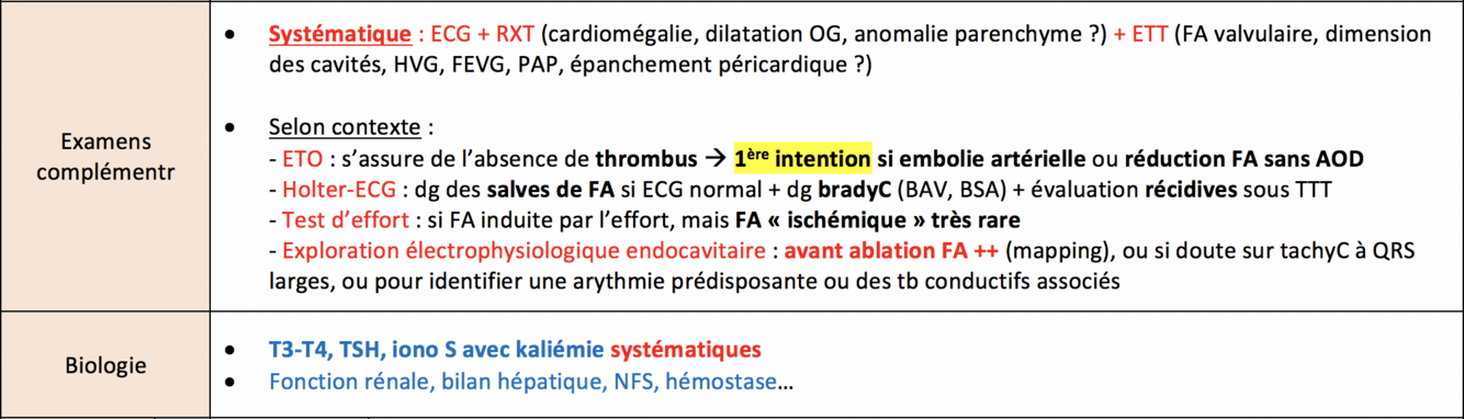Examens complémentaires et biologie à la découverte d’une FA