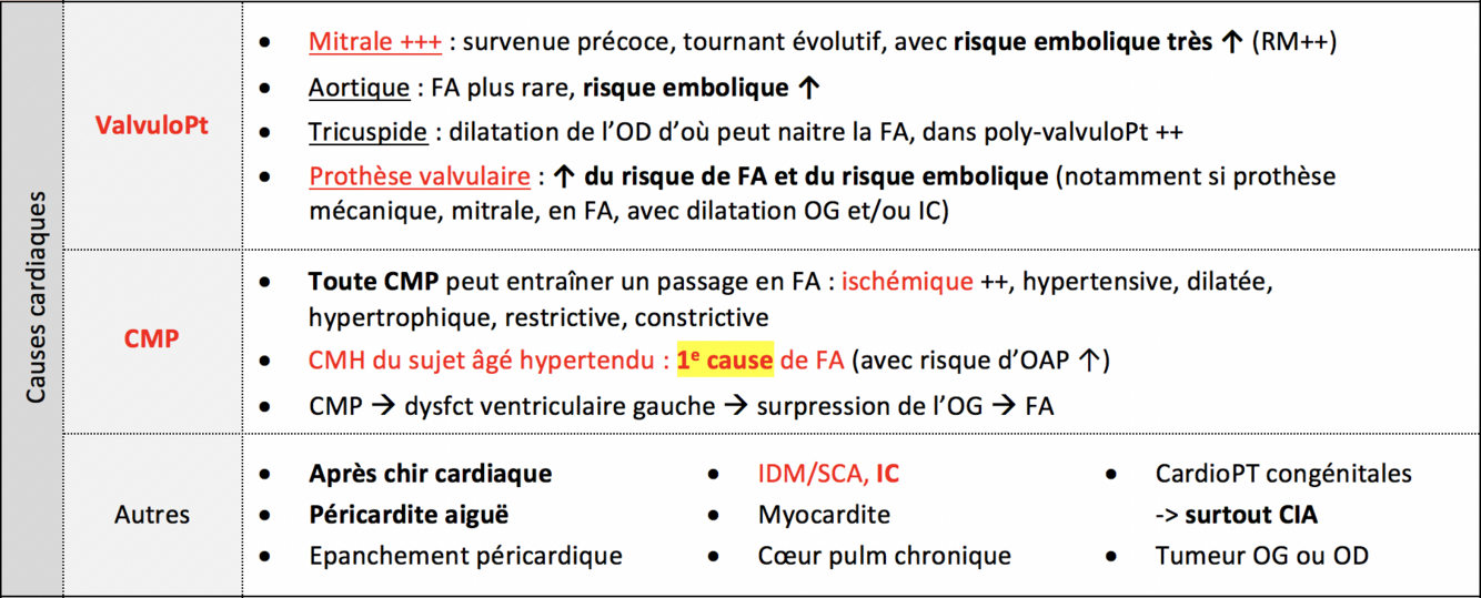 Causes cardiaques de FA