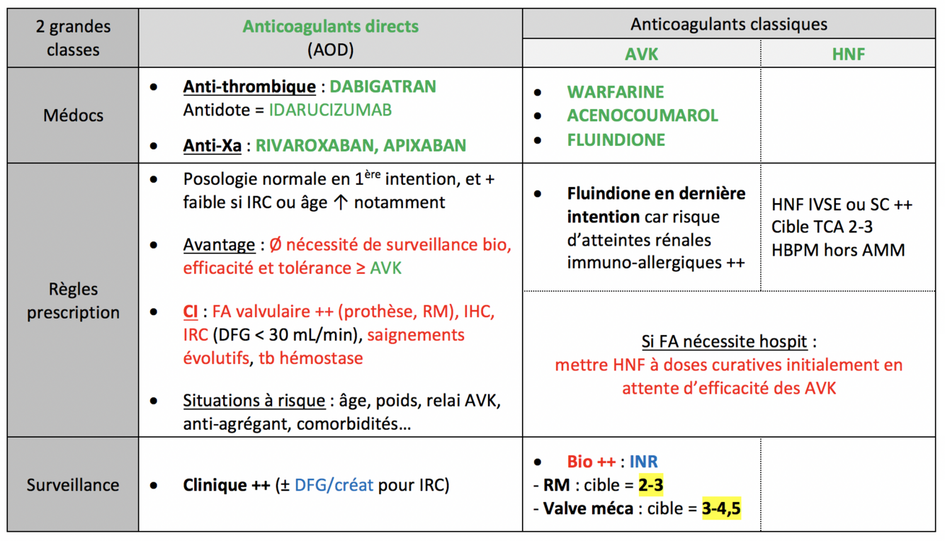 TTT anti-thrombotique pour la FA