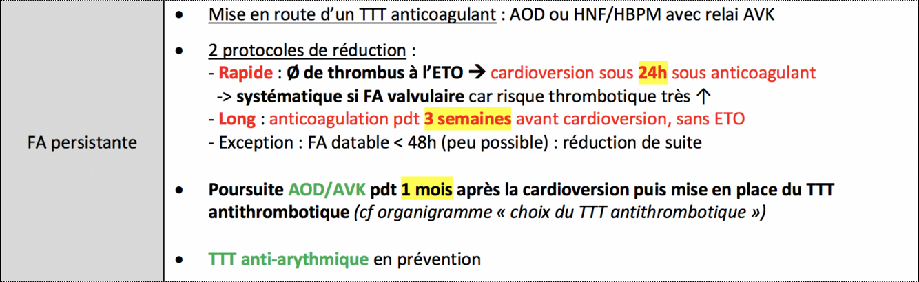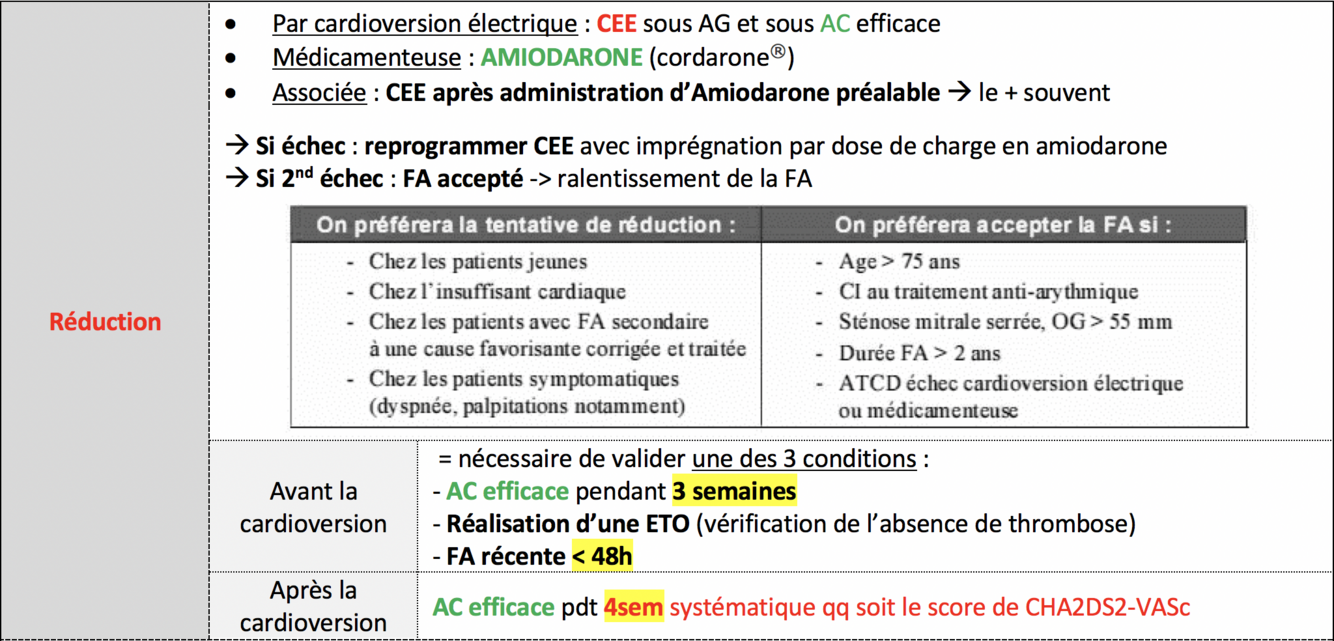TTT de la FA : réduction