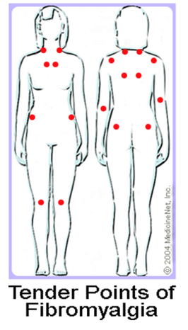 Where are the main points of hypersensitivity in fibromyalgia?