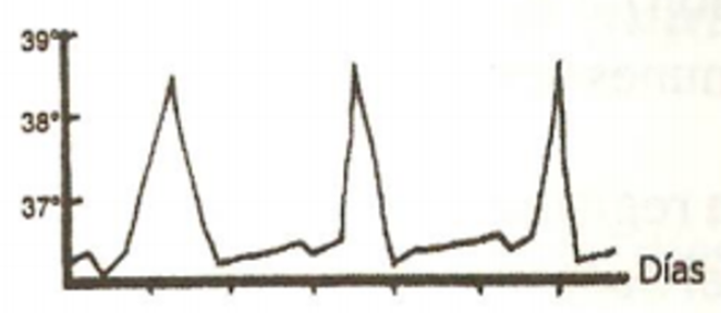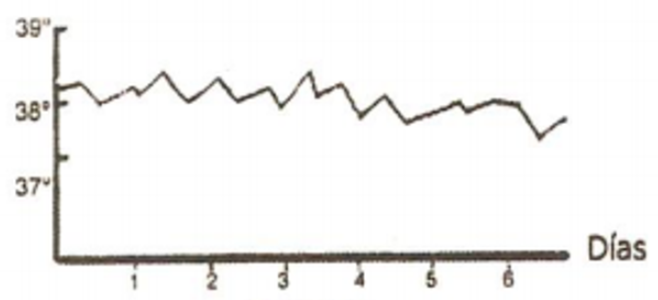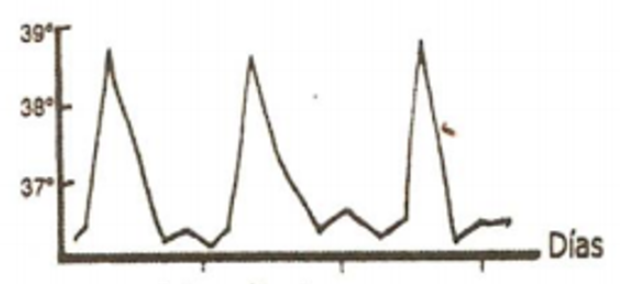 La temperatura corporal experimenta fluctuaciones periódicas. Este patrón se caracteriza por la presencia de picos febriles seguidos de valles normotérmicos.