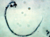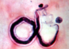 Microfilariae released into blood from mating adult worms in lymph nodes - IgE response