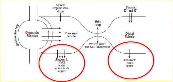 Reabsorption: Substances that the body wants are reabsorbed, those it doesn’t want stay in the tubule and are excreted.