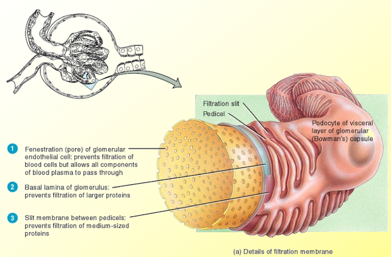 Prevents filtration of medium sized proteins