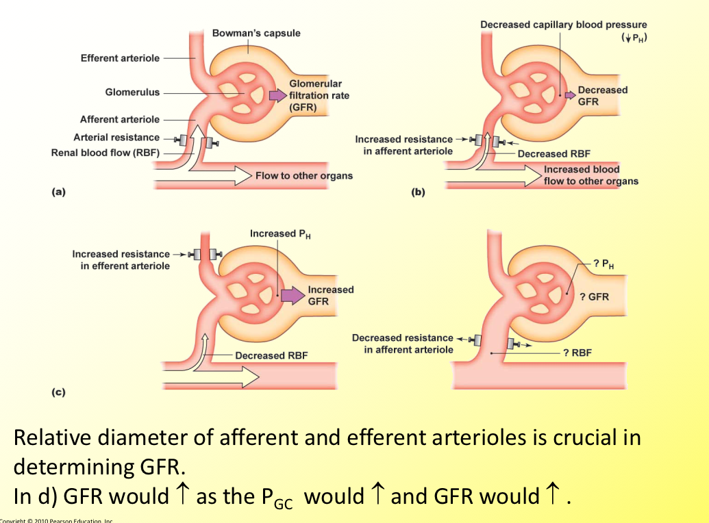 In normal physiology, 1° factor is PGC and this is dependent on the afferent and efferent arteriolar diameter and therefore the balance of resistance between them.