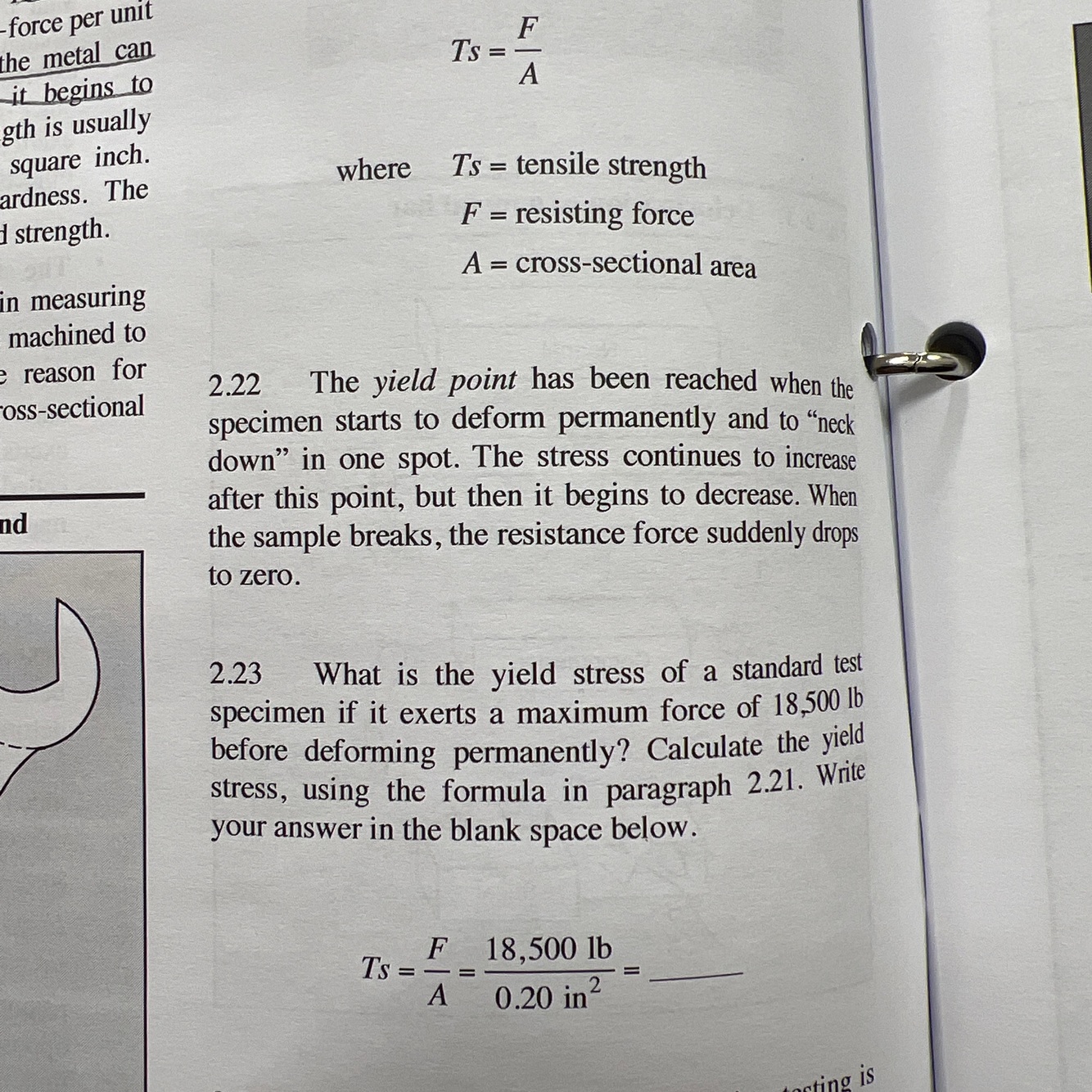 The maximum tensile stress a sample of the metal can apply to the testing machine before it begins to deform permanently