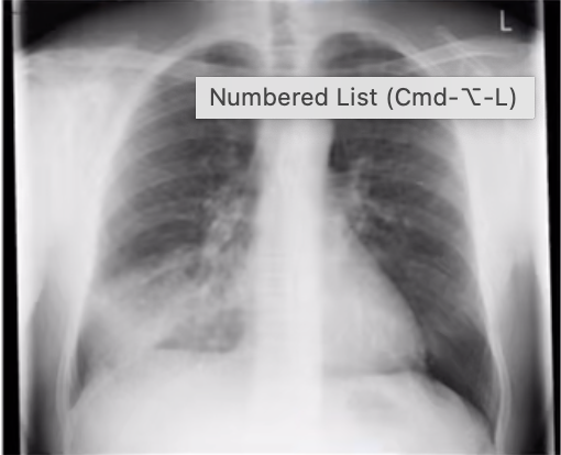 Radioopacidad en lóbulo inferior derecho.