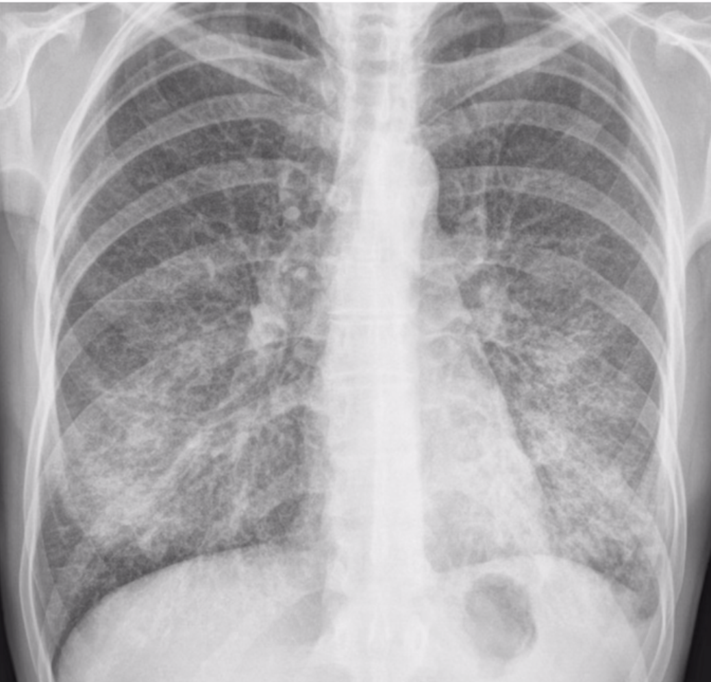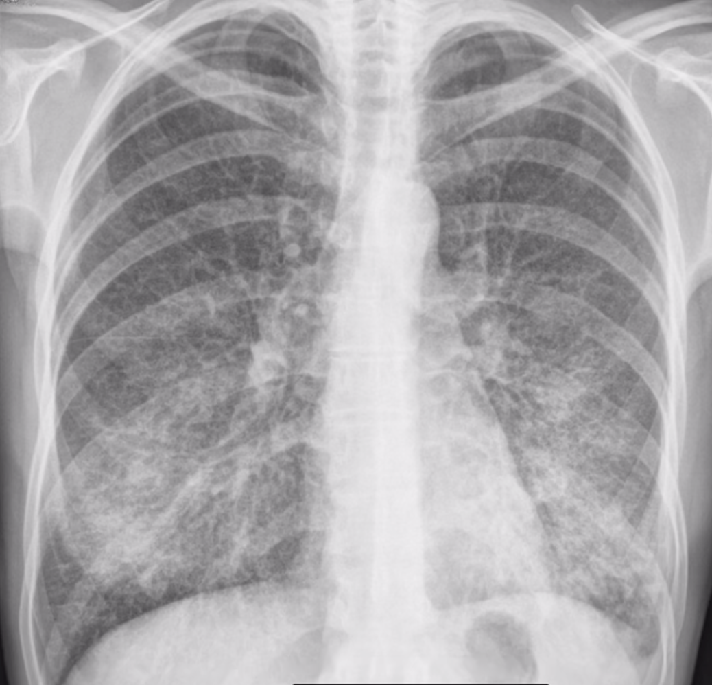 Patrón reticular fino en ambos pulmones.