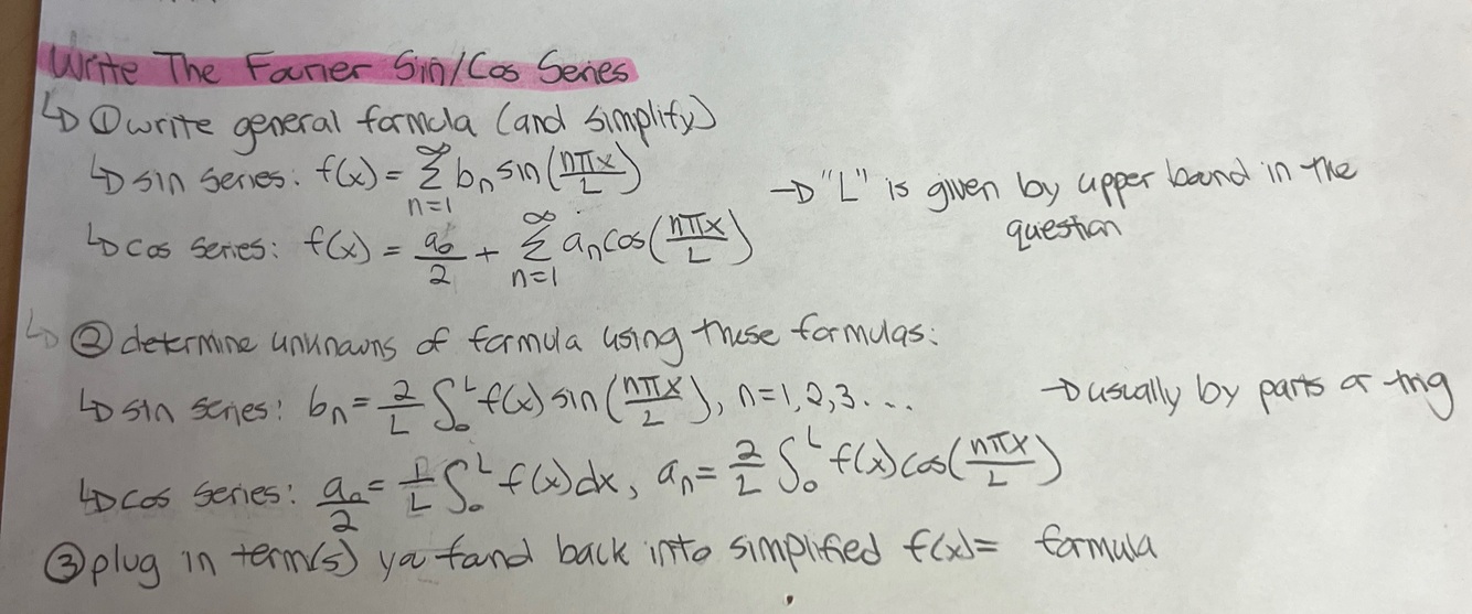 Write the Fourier sin and cos series (3)