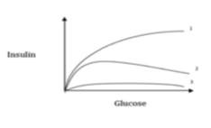What would be the response of a patient with type 2 DM after taking glucose?
