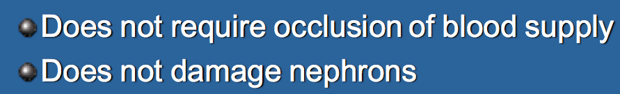 Pyelolithotomy- Does NOT Require Occlusion of Blood Supply and does NOT Damage Nephrons