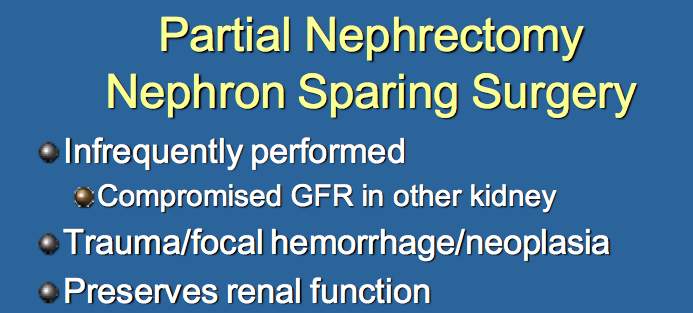 Trauma/Focal Hemorrhage/ Neoplasia in a Patient with CONTRALATERAL Renal Compromise and we want to preserve as much Renal Tissue as Possible