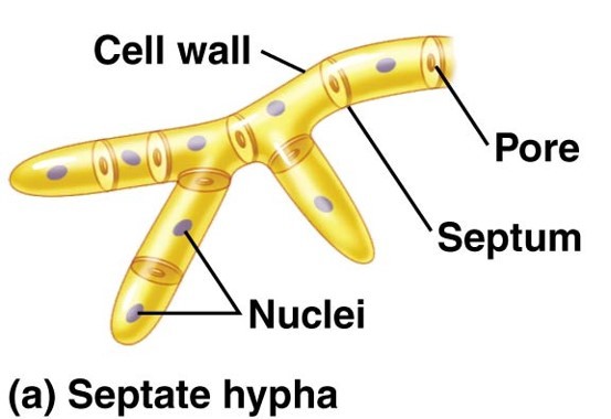 Septate hyphae contain ______, or cross wall that separate nuclei.