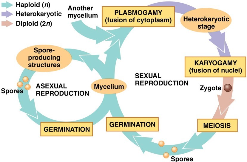 Sexual reproduction in fungi starts with __________, when two haploid fungi fuse.
