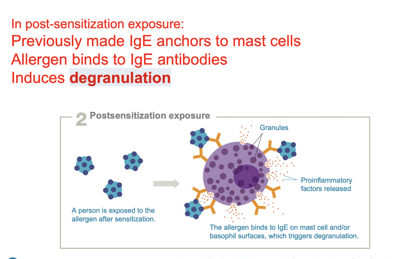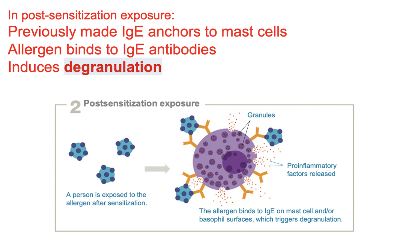 Next time: allergen grabs IgE on mast cells → cells explode their granules → fast allergy reaction.