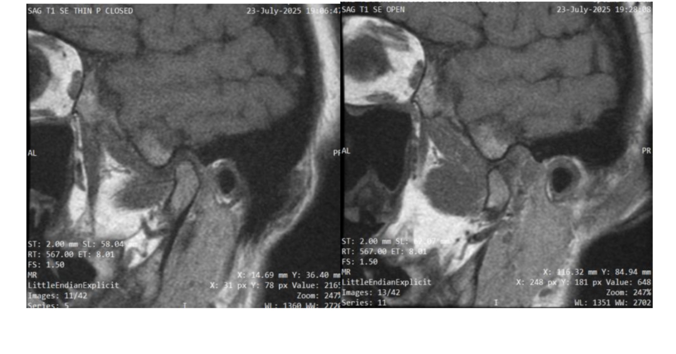 Sagittal oblique TMJ (closed vs. open mouth)