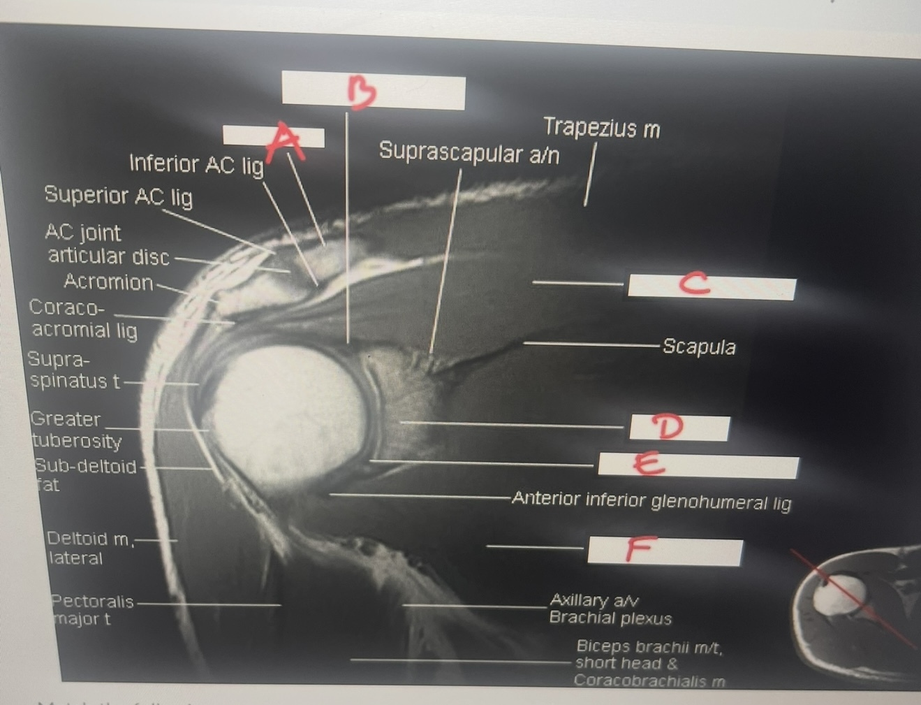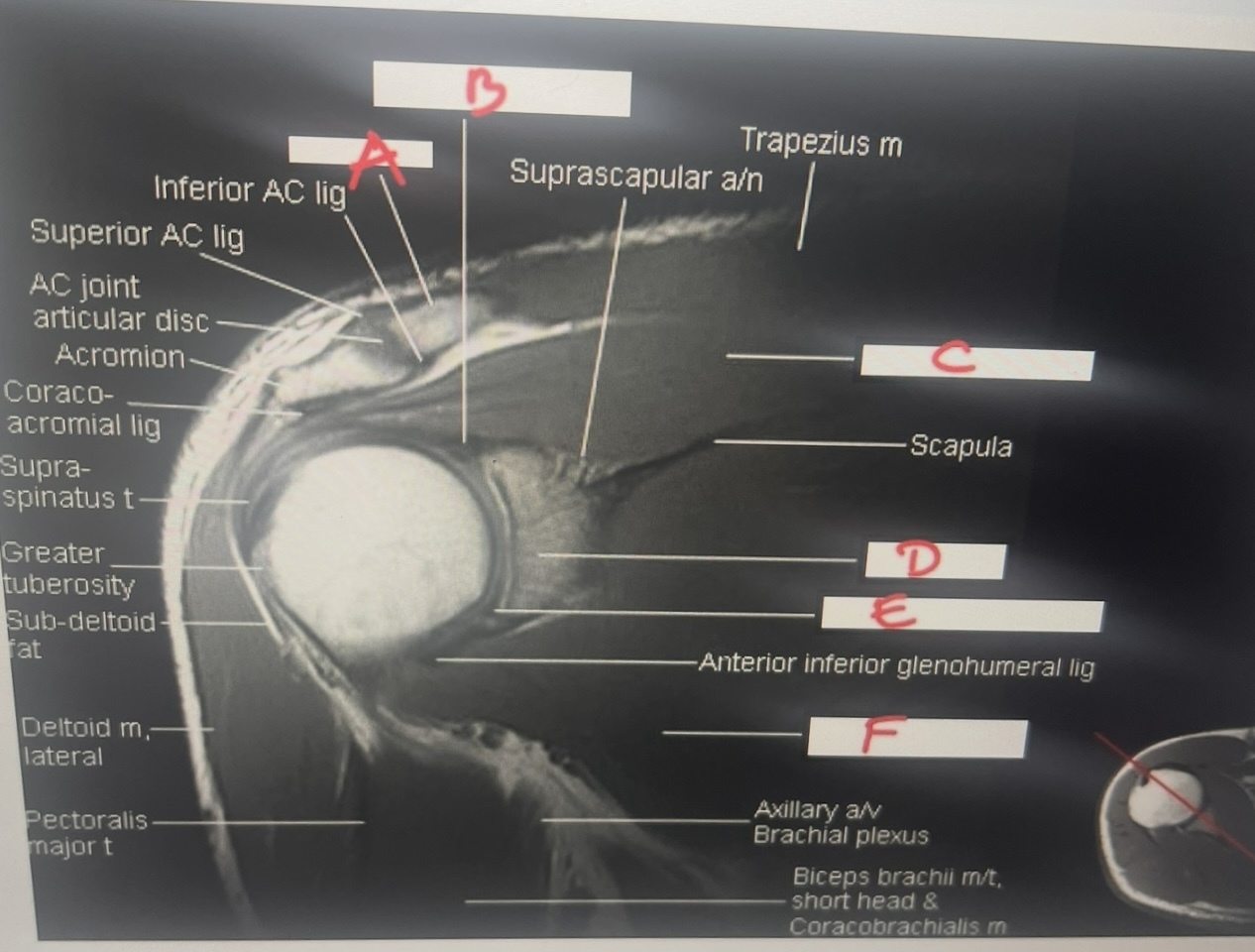 clavicle, AC joint, supraspinatus tendon, biceps tendon