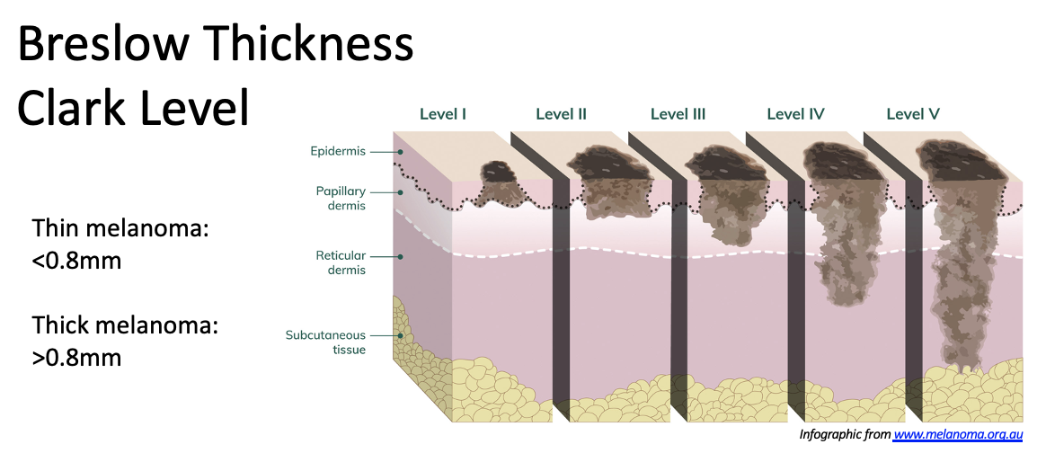 Thin melanoma: < 0.8mm