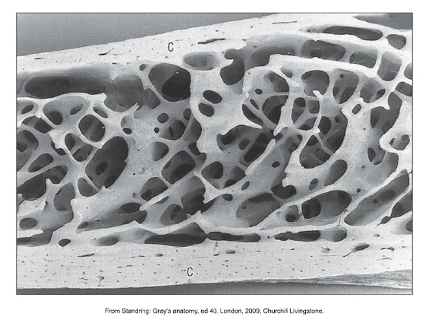 Numerous bony trabeculae ( lattice shaped spaces filled with bone marrow)