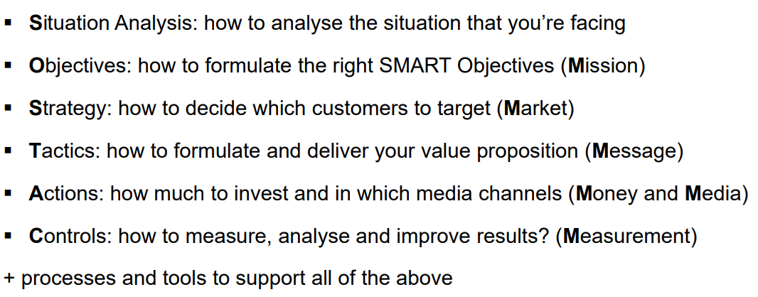 Objectives: SMART business (sales / profit) & marketing / customer goals