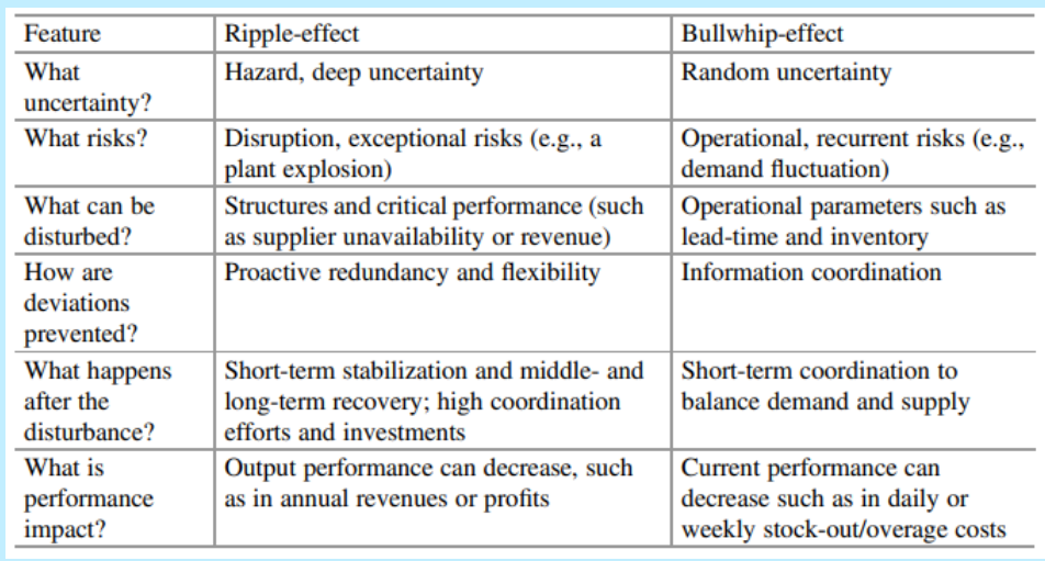 Ripple effect describes the impact of a disruption propagation on supply chain performance and disruption-based scope of changes in supply chain structural design and planning parameters.