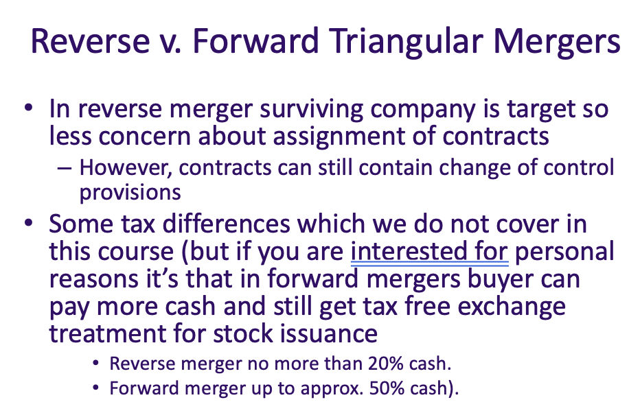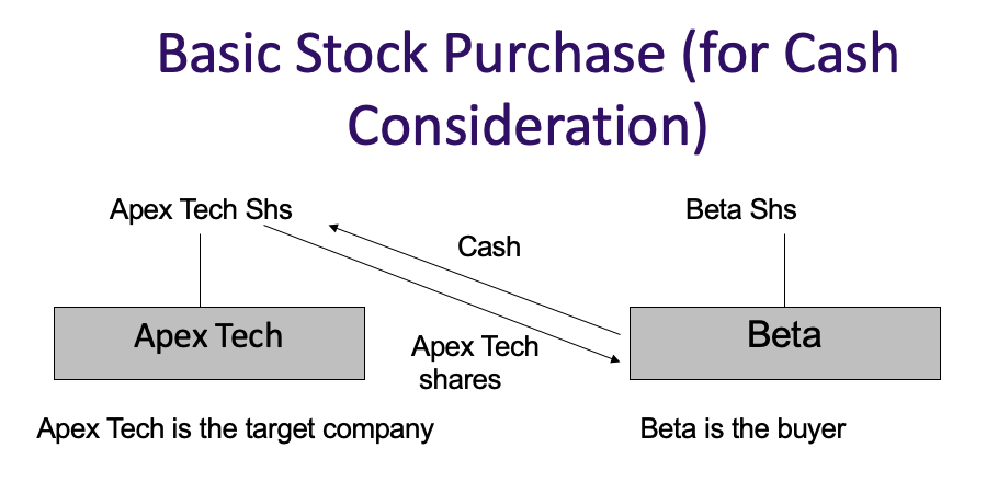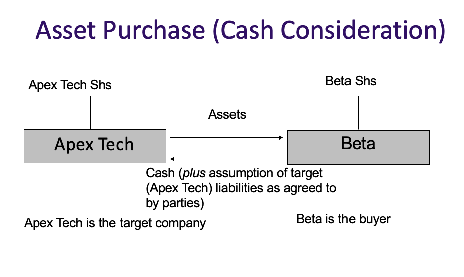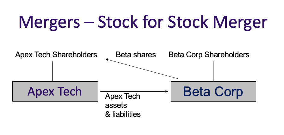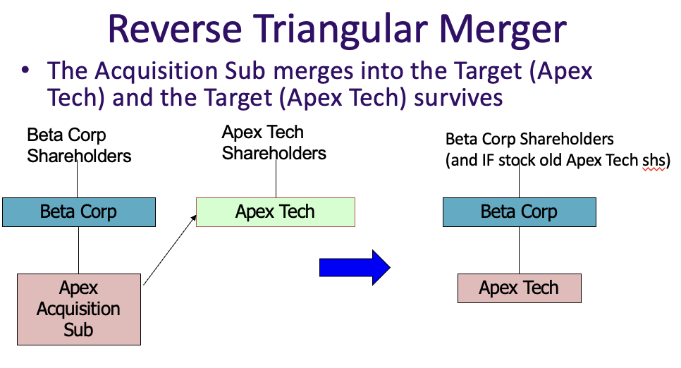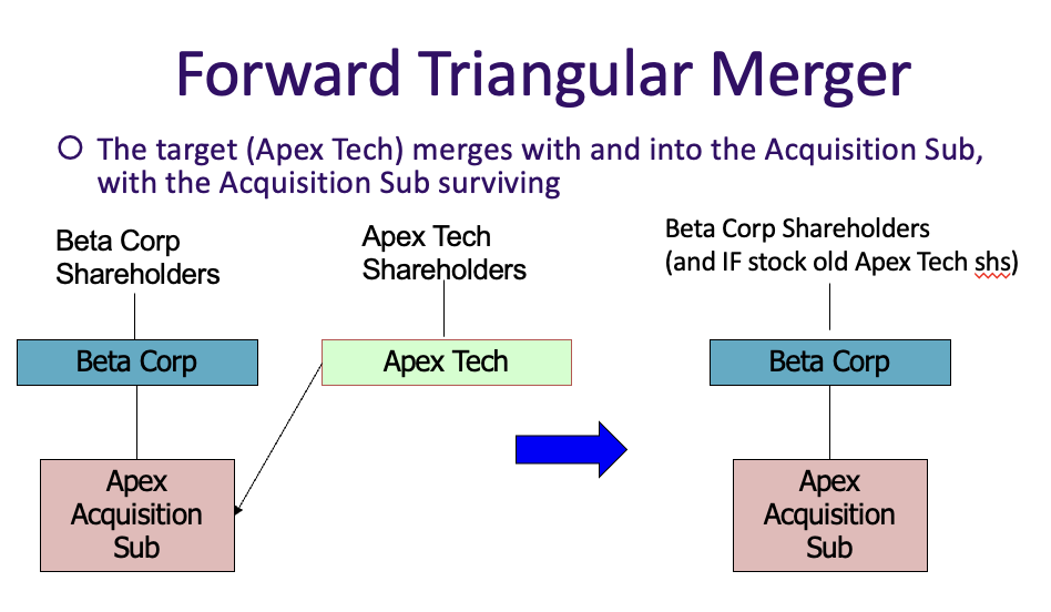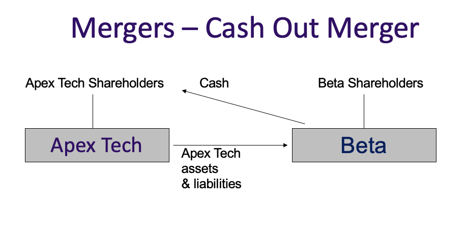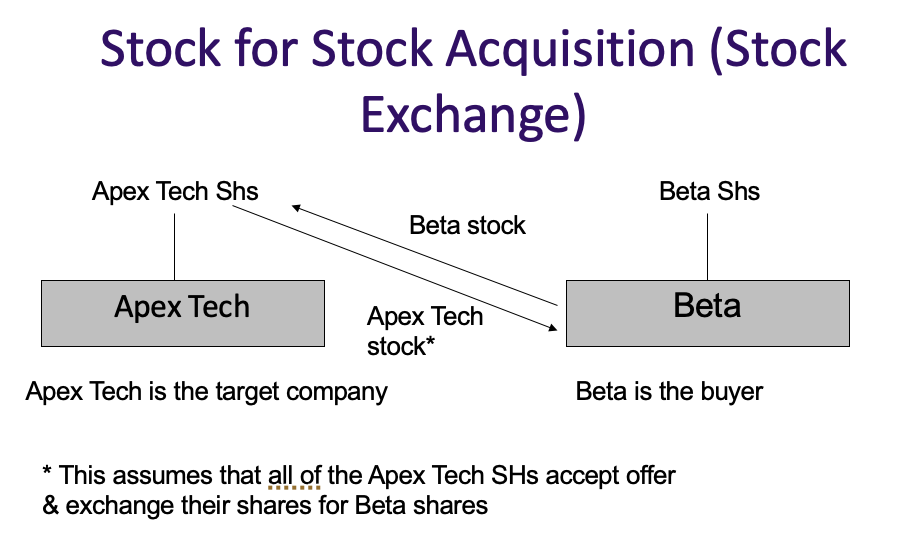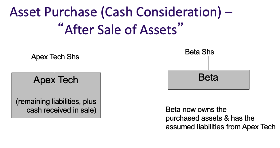 Now, former Apex shareholders own cash and no stock if they accepted the deal. Beta shareholders own Beta, which in turn owns Apex.