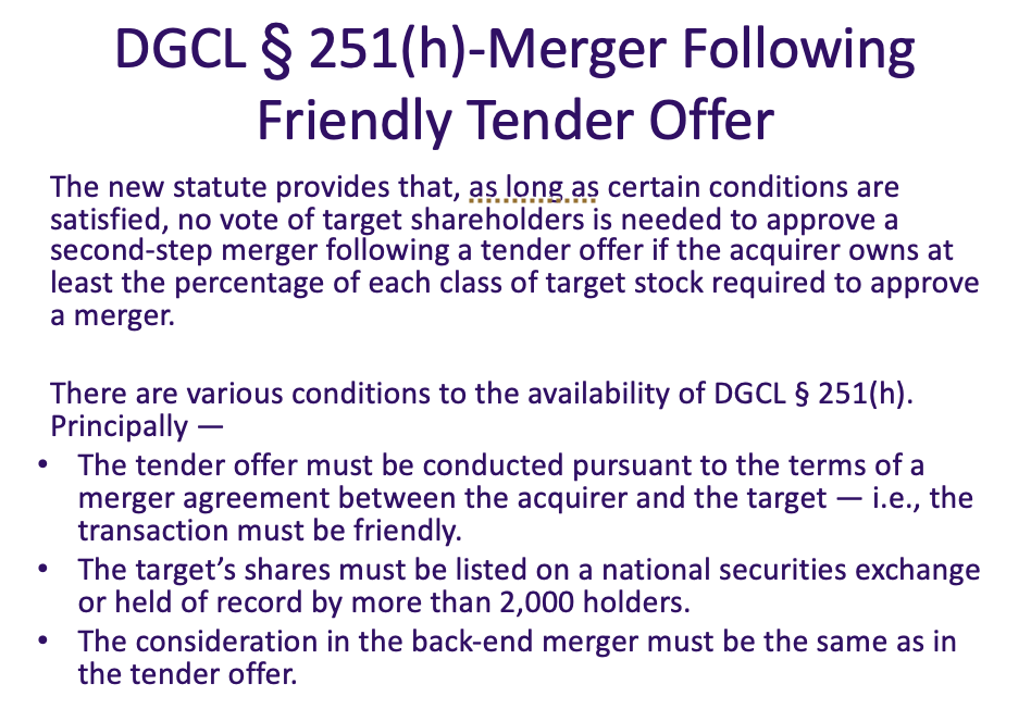 * No formal shareholder vote (shareholders “vote” by tendering/not tendering)