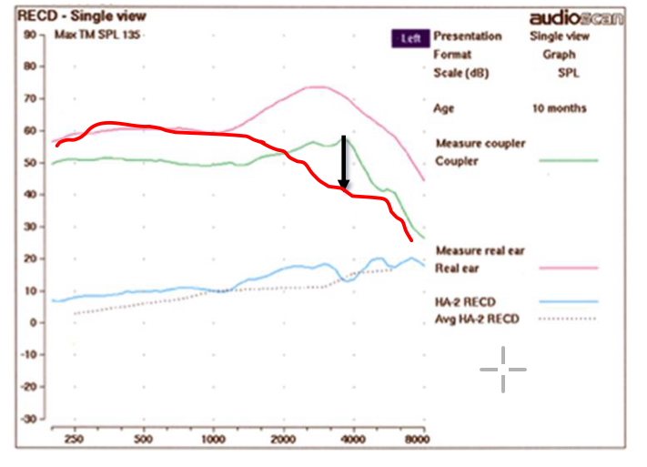 A negative RECD >10 dB in the 4– 6 kHz region suggests