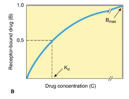 K(d) is a point on the horizontal axis (Drug Concentration) where 50% of the receptors are bound.