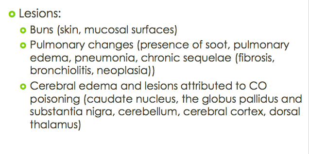 Pulmonary Changes- Presence of Soot, Pulmonary Edema ect.