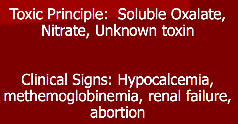 Toxic Plant that accumulates Nitrate and Soluble Oxalate and an unknown toxin that commonly causes Renal Failure in Livestock