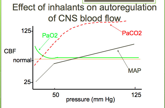 On Gas Anesthesia, The Cerebral Blood Flow increases even Higher in Response to Increased PaCO2. You’re not going to need as High of Levels of PaCO2 to Increase Cerebral Bloow Flow