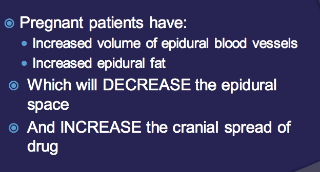 *Epidural Blood Volume is decreased by 1/3rd in Pregnant Patients