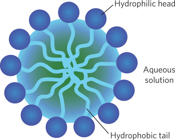Water will solvate the polar, hydrophilic tail