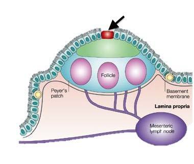 Uptake of protein and peptide antigens from the intestinal lumen and transport to the gut-associated lymphoid tissue